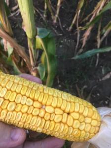 See how its’ all dented? But still a drop of milk when I squeeze it. So not quite to ‘black layer’ yet. That will start at the bottom and move up the kernel as it dries. I’m not there yet. I’ve seen a few people starting to chop corn silage for feed. This wouldn’t quite be ready yet either. You want it in black stage before chopping. Maybe another week or two depending on weather. Not that I chop anymore. I kind of miss that. I always liked chopping corn. It smells good and goes easy and was fun to do.