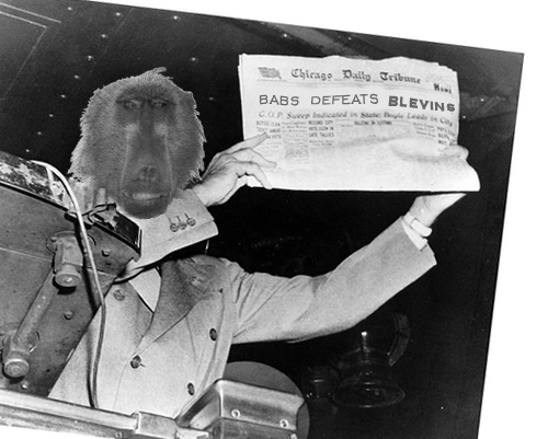 I called all the baboons into my office (comfy chair by the windows, master bedroom) yesterday for a meeting about the tainted election.