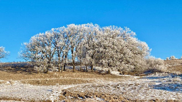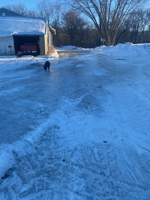 I took the header photo last week before the snow. Daughter, dogs, and I took a ride in the gator and stopped for this photo. The dogs run halfway, then we load them in the back, and they ride the rest of the way home. Humphrey is not a jumper; I need to find a snow drift or bank so he can get in there.